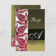 RED DAMASK VELVET TULIPS MONOGRAM Burgundy White RSVP Card