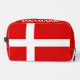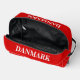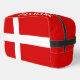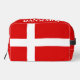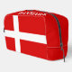 Red Danish flag personalised toiletry travel bag. Custom red Dopp Kit design. Personalise with name or monogram optionally. Colours can be changed too.