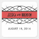Elegant and classy Deco Flourish Wedding Stickers featuring a fancy swirl red border. This stylish design is the perfect choice for a vintage deco chic inspired wedding. Easy to customise, simply add your wedding details in the text fields provided. Click "Customise It" to find more personalisation options.
