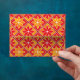 Lovely decorative tiles form a repeating pattern of bright and bold red and gold flowers. This is a fun envelope for your note cards with a matching solid colour in the inside.