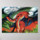 Franz Marc's Red Deer II (1912) is a striking example of his mature style, where the vibrant use of colour and abstraction conveys a sense of energy and movement. In this painting, Marc depicts a red deer surrounded by bold, vivid hues, notably red and orange, which represent both the physical power and the inner spirit of the animal. The form of the deer is simplified into geometric shapes, capturing the essence of the creature without focusing on detailed realism. The dynamic composition, with flowing lines and expressive colour contrasts, reflects Marc's interest in representing the emotional and spiritual connections between animals and nature. This work is an embodiment of Marc’s philosophy that animals possess a deep, primal energy that can be expressed through art, offering a profound reflection on the connection between life and the natural world.