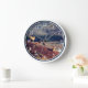 This round clock features a group of red deer resting in the early morning in Glen Etive, in the Highlands of Scotland. It's a calm and peaceful scene. The clock has easy to read white numbers and is bordered in white with deep grey on the outside.