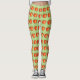 Leggings feature an original illustration of a shiny red apple, printed on a green background.