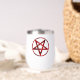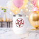 Red, inverted, textured pentagram in circle, on white background. Occult symbol. 666