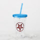 Red, inverted, textured pentagram in circle, on black background. Occult symbol. 666