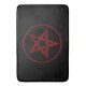 Red, inverted, textured pentagram in circle, on black background. Occult symbol. 666