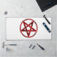 Red, inverted, textured pentagram in circle, on white background. Occult symbol. 666