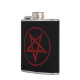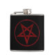 Red, inverted, textured pentagram in circle, on black background. Occult symbol. 666
