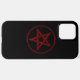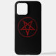 Red, inverted, textured pentagram in circle, on black background. Occult symbol. 666