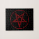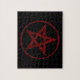 Red, inverted, textured pentagram in circle, on black background. Occult symbol. 666