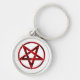 Red, inverted, textured pentagram in circle, on white background. Occult symbol. 666