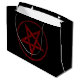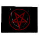 Red, inverted, textured pentagram in circle, on black background. Occult symbol. 666
