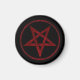 Red, inverted, textured pentagram in circle, on black background. Occult symbol. 666