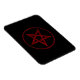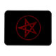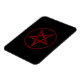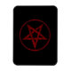 Red, inverted, textured pentagram in circle, on black background. Occult symbol. 666