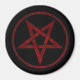Red, inverted, textured pentagram in circle, on black background. Occult symbol. 666