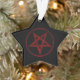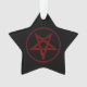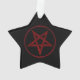 Red, inverted, textured pentagram in circle, on black background. Occult symbol. 666
