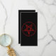 Red, inverted, textured pentagram in circle, on black background. Occult symbol. 666