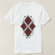 A powerful composition of four diamond-shaped segments filled with vibrant red and black tribal patterns. The diamonds are connected by thin, minimalist black circuit lines originating from a central red dot, creating a striking abstract geometric design.