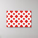 A bold, geometric pattern of large and small red diamonds on a white background. The white forms a lattice which separates the diamond shapes.