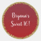 Red Dipped Gold Glitter Glam Sparkle Party Classic Round Sticker