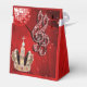 Personalised, elegant custom party favour box for women's 60th birthday with glitz and glamour. Beautiful red and white party favour boxes for women with a funky retro disco mirror ball, glamourous printed image of a jeweled crown, and glittery musical notes / music notes with sparkles on a vibrant red lights and sparkles background. Chic, classy, cute, girly, modern party favour boxes for 60th birthday in trendy, fashionable colours. These are groovy, stylish, sophisticated, pretty favour boxes. If you need any assistance customising your product please contact me through my store and I will be happy to help.