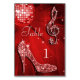 Elegant custom table number cards for birthday party events for women's and girls parties and celebrations. Beautiful re and white double sided cards with a funky retro disco mirror ball, glamourous printed image rhinestone glitter, sequins, jewels sparkles glittery musical notes / music notes and a stunning sparkly stiletto high heel fashion shoe on a vibrant red lights and sparkles background. Chic, classy, cute, girly, modern cards with trendy, fashionable colours. These groovy, stylish, sophisticated, pretty disco theme table numbers cards are decorated / printed on both sides. Perfect cards for a dinner dance / dancing event. Sweet 16, Quinceanera and for a woman's birthday party or any glitz and glamour occasion. PLEASE NOTE: All paper products on Zazzle have flat printed images. If you need any assistance customising your product please contact me through my store and I will be happy to help. SARAH_DESIGNS MOST POPULAR PRODUCTS FLASH PANEL