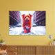 Red dog walking down snowy winter street canvas print
