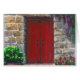 A watercolor painting of a red door of a greek village home painted by Georgia Pistolis.
