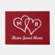 Red door mat with interlocking hearts and initials plus quote. Home sweet home. Make your own custom indoor / outdoor doormat with custom background colour and saying. Add your own welcome message, family name, monogram, surname or funny quote. Cute gift idea for new home / housewarming, wedding venue, store, shop, office etc. Trendy script typography with interlocked love symbol. Romantic theme. Personalizable template. Create your own entry mat / rug for front door / entryway or hall. Customisable home decor / decorations for your cosy house. Cute present for newlyweds couple, bride and groom, husband and wife.