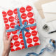A wrapping paper designed with a red dot pattern on a white background and name. Customise the wrapping paper with your special name or text among other options.