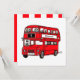 A sweet bright red double decker bus birthday invitation by Helen McCartney Designs. This can be personalised on the front with the name on the banner on the side of the bus, the age on the front blackboard and the party date on the number plate.