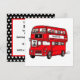 A sweet bright red double decker bus birthday invitation by Helen McCartney Designs. This can be personalised on the front with the name on the banner on the side of the bus, the age on the front blackboard and the party date on the number plate.