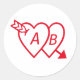 Red Double Hearts with Cupids Arrow and Initials Classic Round Sticker