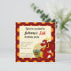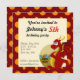 Birthday print invites with illustration of a red dragon guarding a treasure. Illustrated by Maxi Harmony