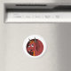Magnet with illustration of head of a cute red dragon in black circle, fairy-tale design for kids by Maxiharmony