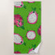 The fabric is soft and fluffy, feels great on the skin. The quality seems to be very good, I have not yet tested how absorbent the fabric is. The colors were vivid, the lines of the design clear, all in all, a great result.