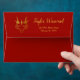 This elegant and chic address label features a red dragon scale background. The text combines decorative and distressed fonts for a historic and mediaeval look.