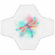 Red, flying, artistically drawn, in bright colours with textured iridescent, blue wings on white background, painted over with splashes of watercolor paint. Bright red dragonfly.