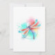 Red, flying, artistically drawn, in bright colours with textured iridescent, blue wings on white background, painted over with splashes of watercolor paint. Bright red dragonfly.