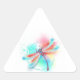 Red dragonfly on watercolor background triangle sticker