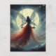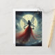 Red Dress Fairy on a Swing Full Moon Night Postcard