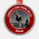 This cute customized high school drill team photo gift features white typography of your team and dancer name on a red Christmas ornament with a silhouette of a girl holding pom poms in boots. Personalize with your student's photograph and class year as a proud parent.