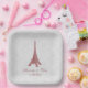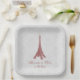 Red Eiffel Tower Damask Wedding Shower Paper Plate