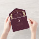 Capture timeless elegance with this Celestial Art Nouveau-inspired invitation featuring your own QR Code! Featuring a radiant golden arch, delicate white flowers, and shimmering stars against a rich cranberry red background, this design sets the tone for a sophisticated celebration. Perfect for weddings, galas, and milestone events! Please note that the gold on this product is NOT real foil; it is printed flat.