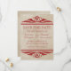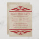 Stylish and chic Elegant Deco Save the Date Announcement featuring a pair of art deco swirl flourish borders in dark red and a vintage textured look background in a soft beige. This save the date invite has rustic charm while maintaining a lovely sophisticated flair. Absolutely perfect for an art deco 1920's vintage themed wedding. Easy to customise, simply add your wedding details in the text fields provided. Click "Customise It" to find more personalisation options such as changing fonts or text colours.