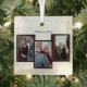 Elegant New Year's 3 photo collage Christmas ornament. Features red frame for photos. Designed for newly engaged couples or married couple, but can be used by families as well.