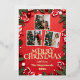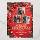 Red Elegant Merry Christmas Family Photo Collage Foil Holiday Card