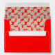 A red envelope lined with a white daisy pattern. Flowers for your messages!