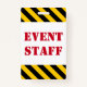 Red "EVENT STAFF" + Black & Yellow Stripes Badge ID Badge