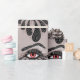 Gothic eye wrapping paper featuring a vector illustration with a gothic feel depicting a weird eye with red iris and dots in it with black striped tears flowing down.